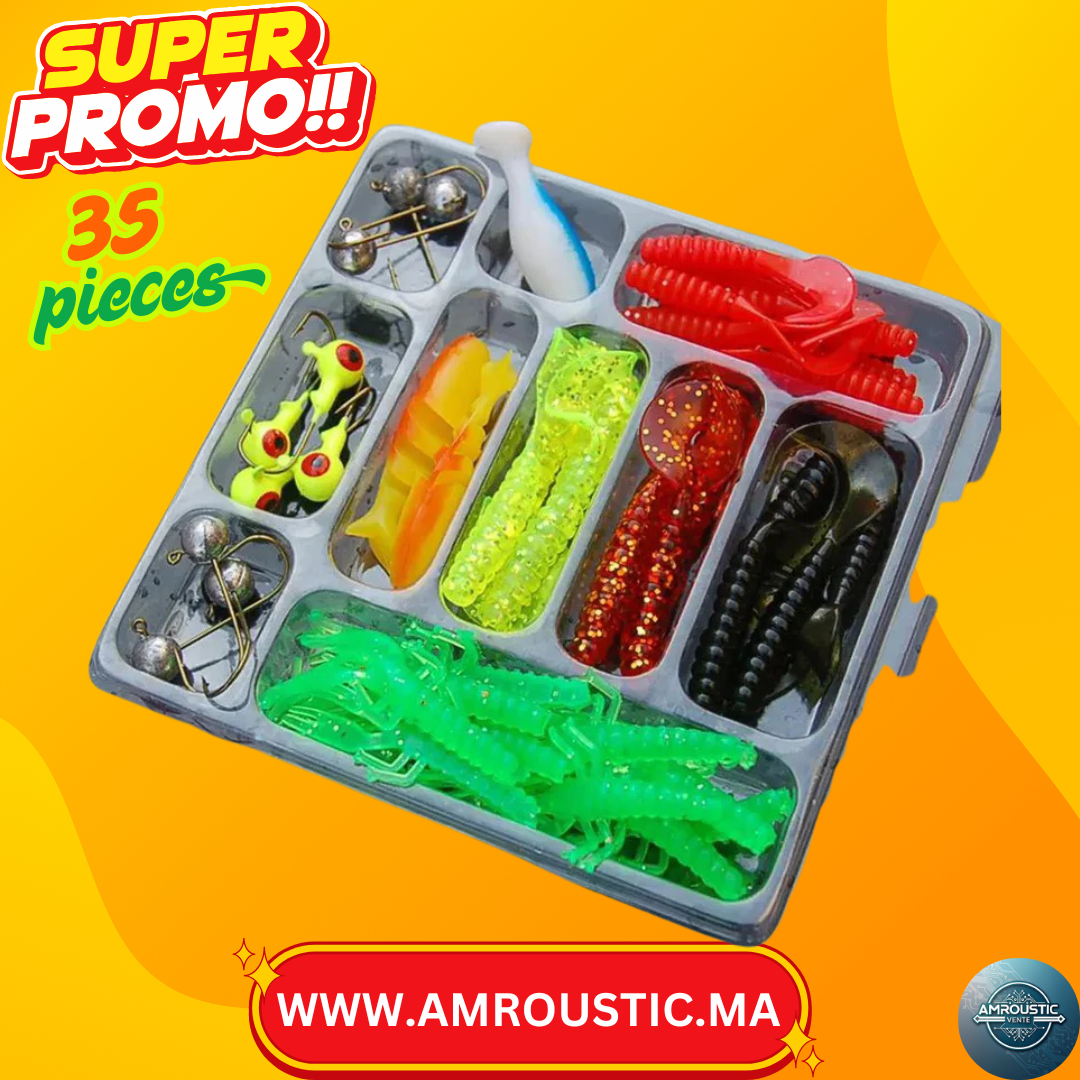 مجموعة من 35 قطعة من طُعم صيد السمك الاصطناعي الناعم المختلط، مجموعة طُعم صيد سمك الشبوط مع خطافات، ودوارة، وملعقة، وطُعم صناعي