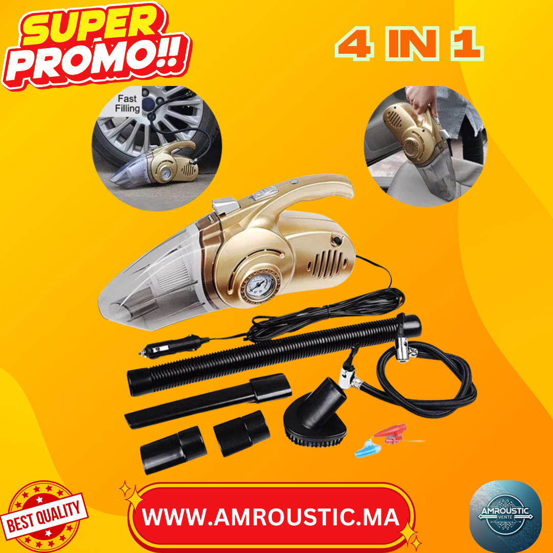مكنسة كهربائية للسيارة 4 في 1، مضخة نفخ أوتوماتيكية للاستخدام الجاف والرطب، ضاغط هواء محمول، مراقبة ضغط الإطارات، أداة تعبئة الهواء