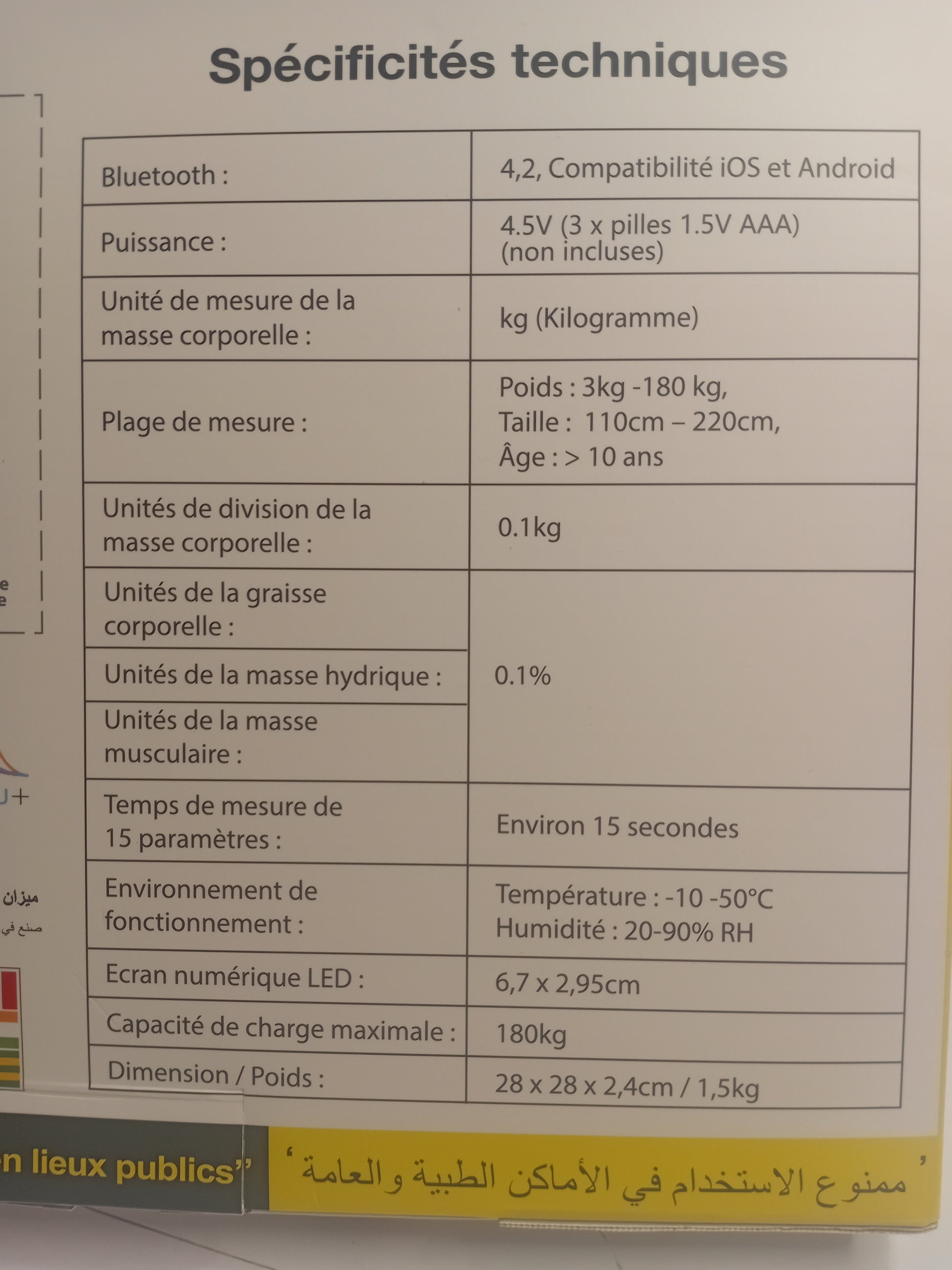 - Batteries : 3 × piles AAA (1.5V) – non incluses