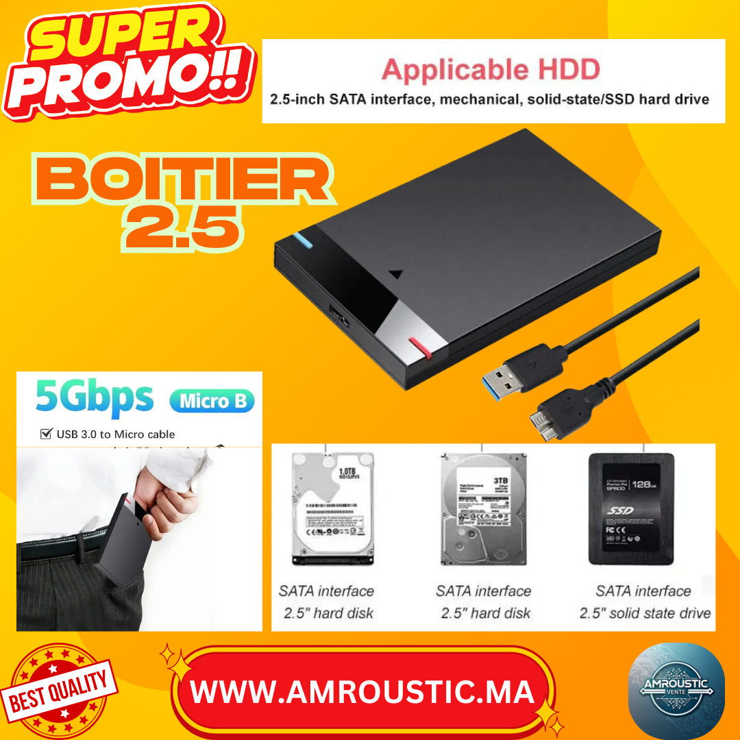 علبة محرك أقراص صلبة خارجية محمولة، حافظة محرك أقراص صلبة مقاس 2.5 بوصة، كابل USB 3.0 Type-C Micro B، سعة 5 تيرابايت، سرعة 5 جيجابت في الثانية، جهاز تخزين عالي الدقة، يدعم UASP