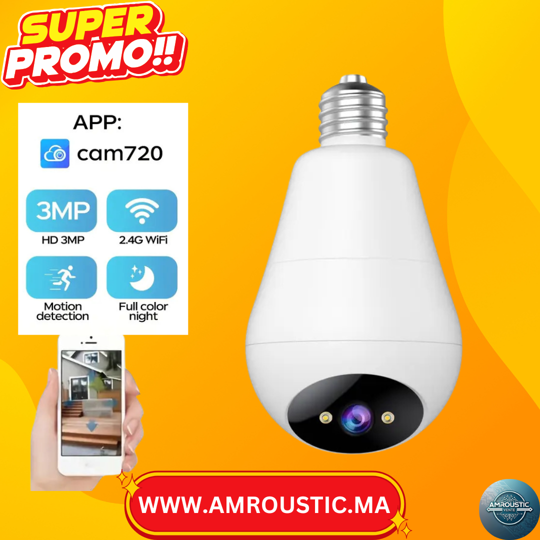 كاميرا مراقبة جوآن ١٢٩٦ بكسل عالية الدقة، مزودة بمصابيح ليد، مزودة بخاصية التتبع التلقائي، ورؤية ليلية ملونة، وصوت ثنائي الاتجاه - كاميرا مراقبة داخلية لاسلكية، مزودة بقاعدة E27، وخاصية كشف الحركة، وتنبيهات صوتية، والتحكم عبر التطبيق، ولا تحتاج إلى بطارية، وتعمل بجهد ١١٠-٢٤٠ فولت، مع مراقبة صوتية | تصميم أبيض أنيق | عدسة عالية الدقة