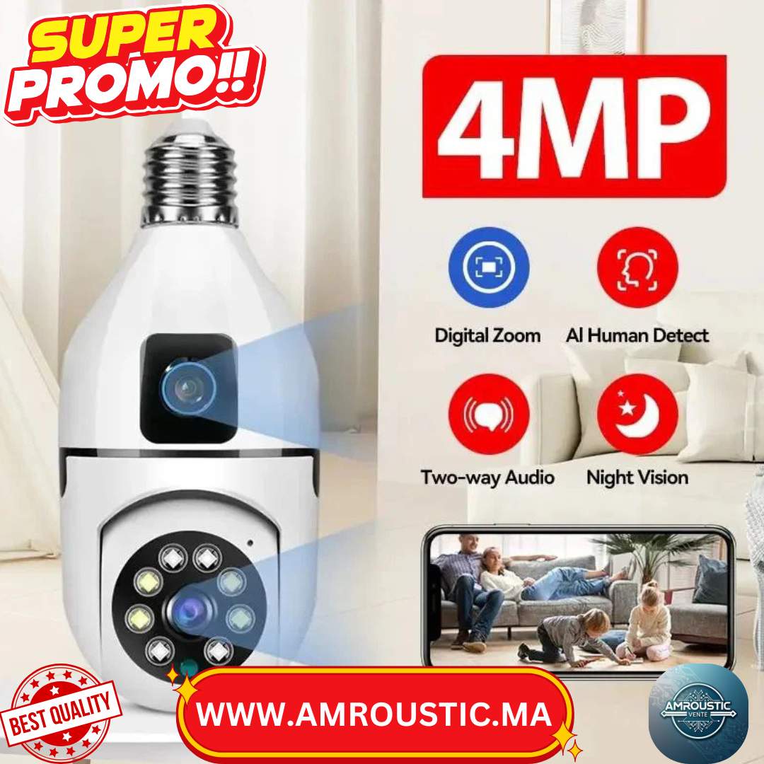 كاميرا Andrea O-KAM السياحية بدقة 4 ميجابكسل، مزودة بعدسة لمبة، وواي فاي، ورؤية ليلية بدقة 1080 بكسل، وكاميرا متحركة بزاوية 360 درجة، وتتبع الأشخاص، ومراقبة أمنية عبر كاميرات المراقبة، ومحادثة ثنائية الاتجاه