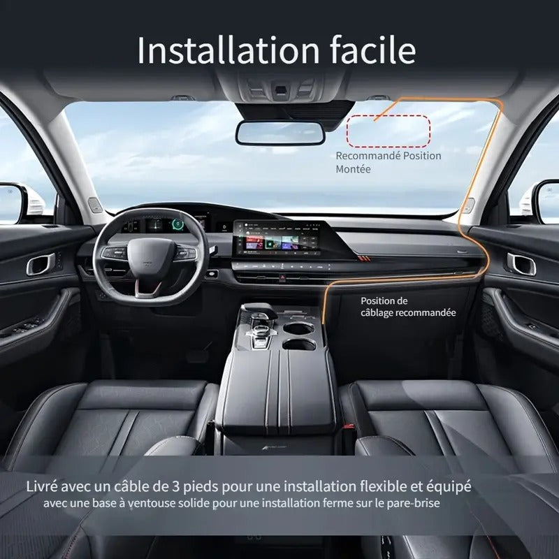 ✔ Installation facile grâce au montage en surface, directement sur le pare-brise.