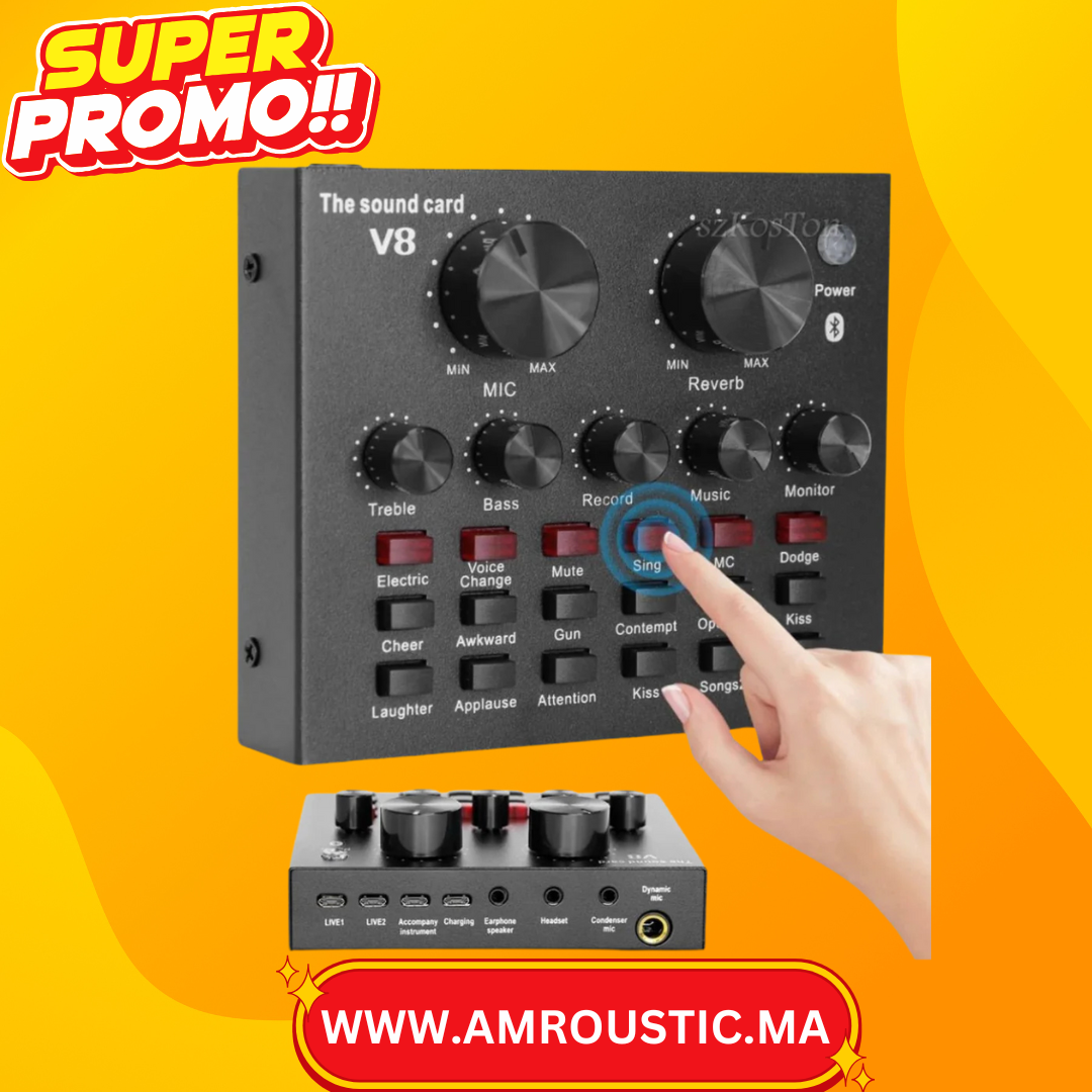 بطاقة صوت خارجية V8 Audio USB، ميكروفون، سماعة رأس، بث مباشر شخصي على الويب للهاتف والكمبيوتر