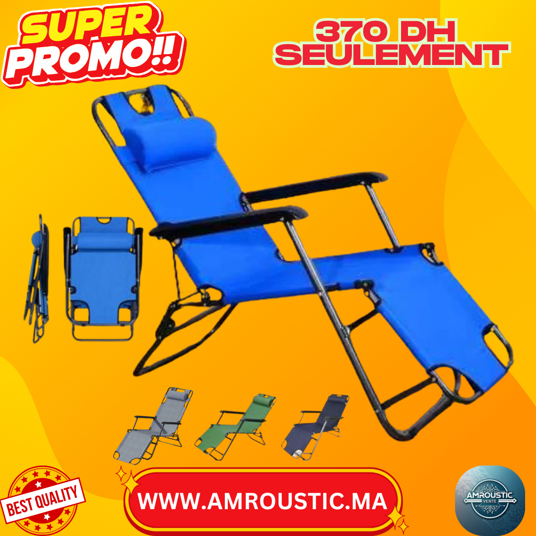 كرسي استرخاء قابل للطي مع مسند ظهر قابل للتعديل، أزرق، 118 × 60 × 80 سم
