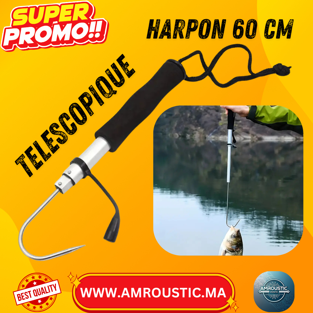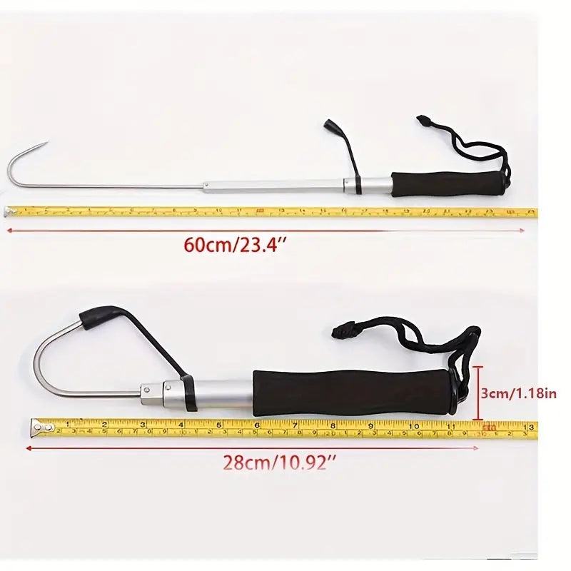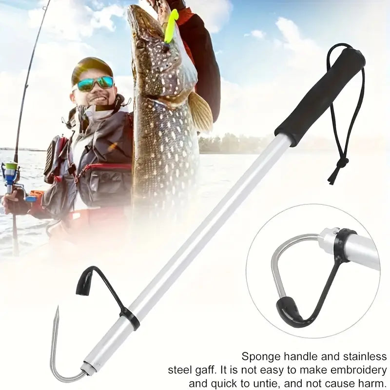 Crochet de pêche 60 CM télescopique en acier inoxydable avec manche antidérapant et dragonne de sécurité. Idéal pour sortir facilement vos prises de l’eau, cet outil robuste offre une excellente résistance à la corrosion et une bonne prise en main. Parfait pour la pêche en mer ou en eau douce.
