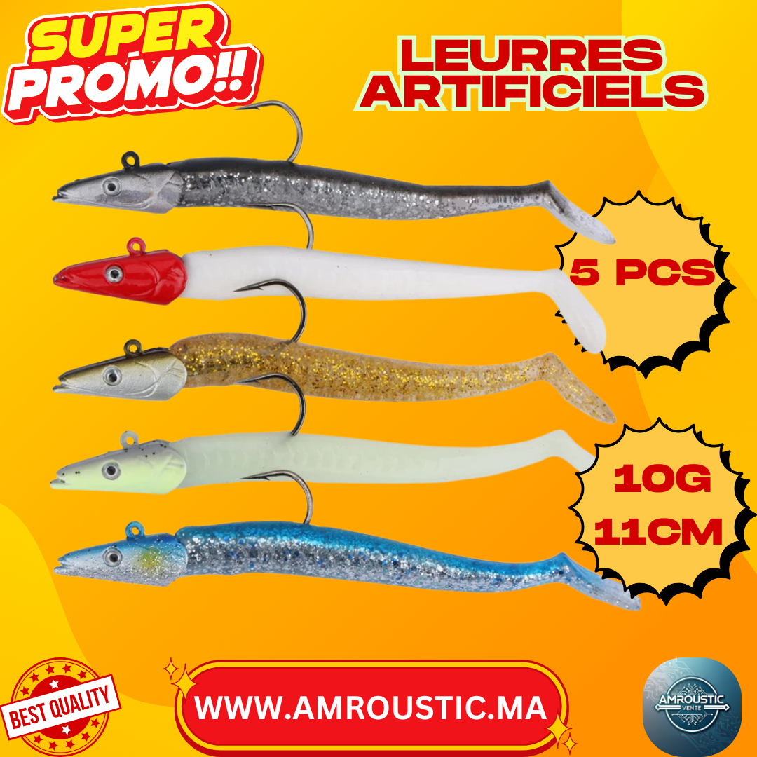 طُعم صيد ناعم 10 جرام/11 سم، 5 قطع