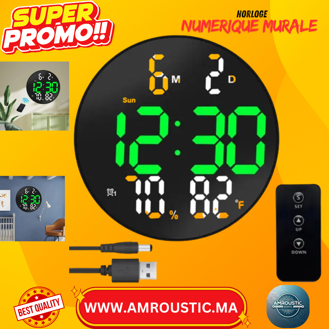 ساعة حائط رقمية كبيرة LED مع جهاز تحكم عن بعد، درجة الحرارة، الرطوبة، التاريخ وعرض الأسبوع، مؤقت تنازلي، ديكور منزلي، 10 بوصات