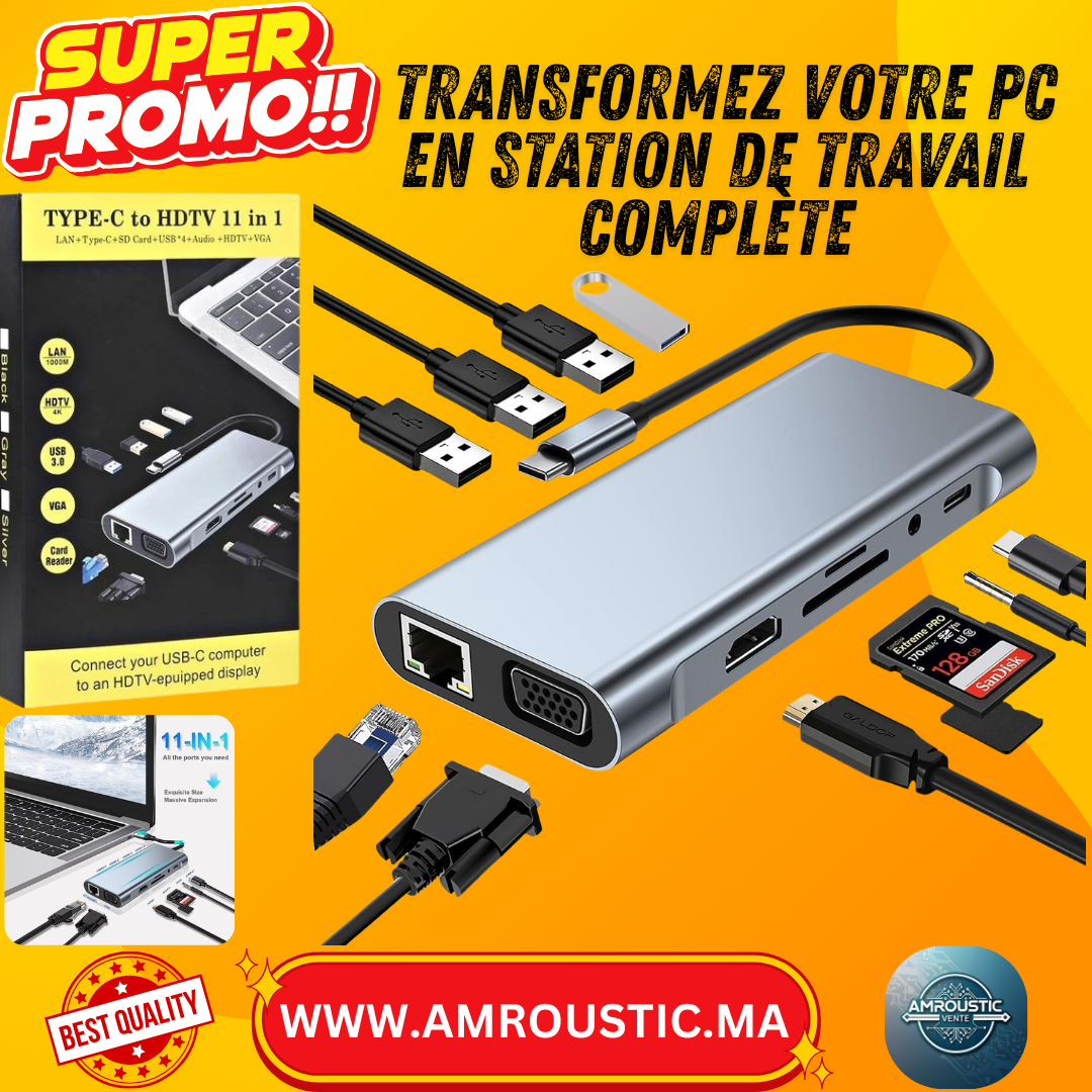 Boostez la connectivité de votre ordinateur portable avec ce Hub USB-C 11 en 1 multifonction !