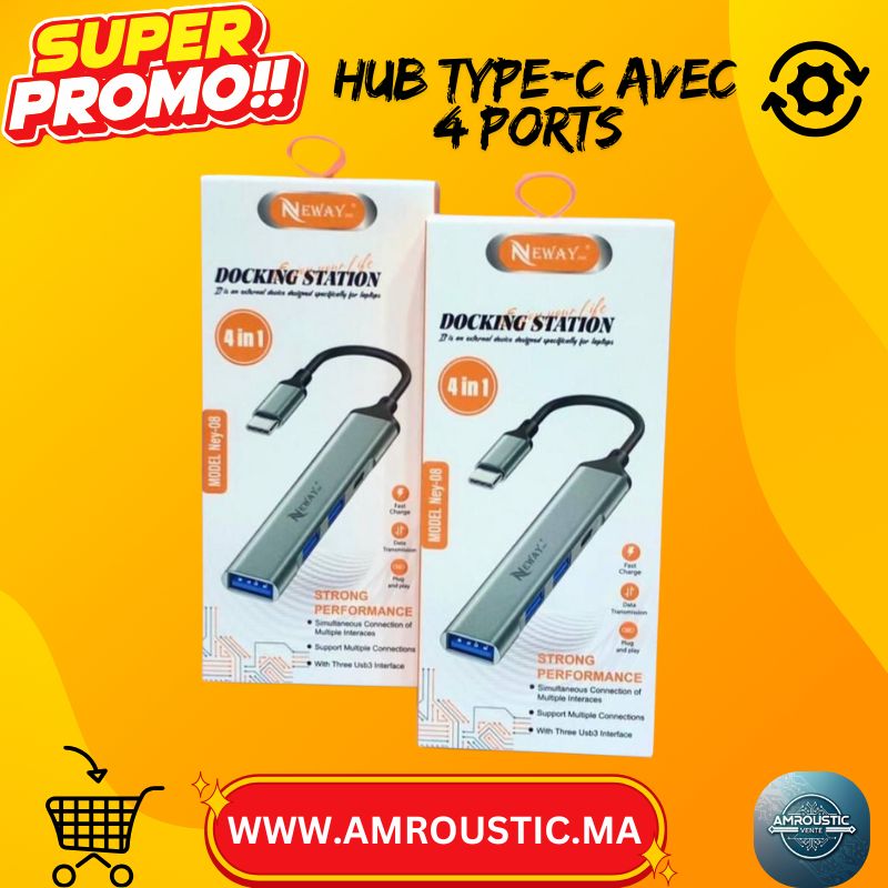 موزع USB-C متعدد الوظائف من نيواي NEY-07 | محطة إرساء من النوع C، 3 منافذ USB + شحن سريع