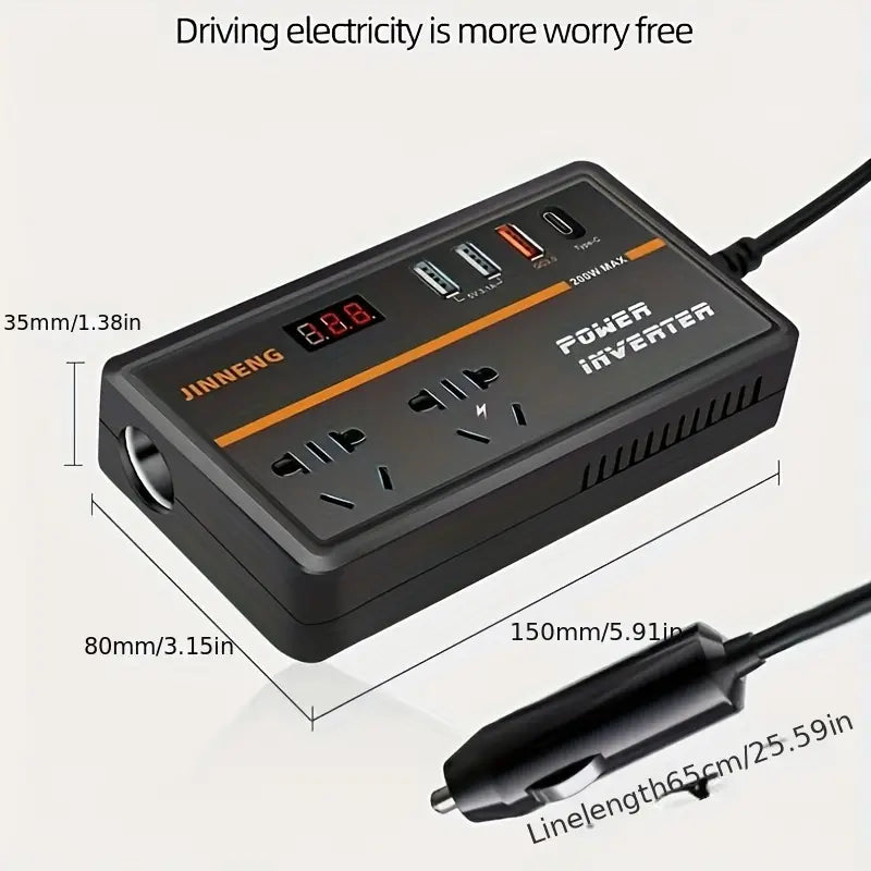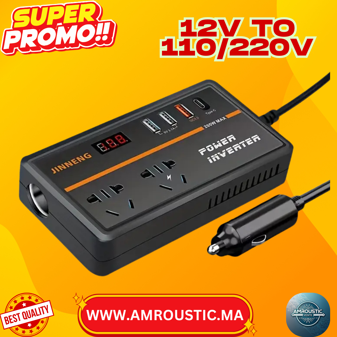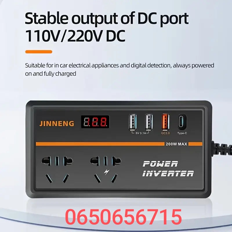 محول طاقة JINNENG 12 فولت 24 فولت إلى 220 فولت للسيارة والشاحنة، محول تحويل الطاقة، شحن سريع عبر USB، شاشة عرض الجهد الرقمية، بدون بطارية