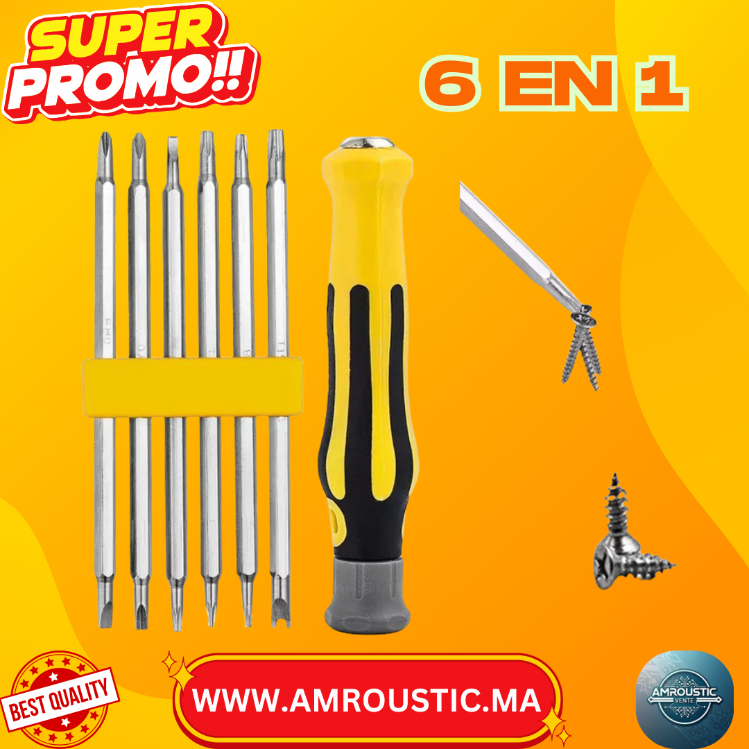 مجموعة مفكات براغي مغناطيسية آمنة 6 في 1، رأس سداسي توركس، رأس مسطح، أداة يدوية