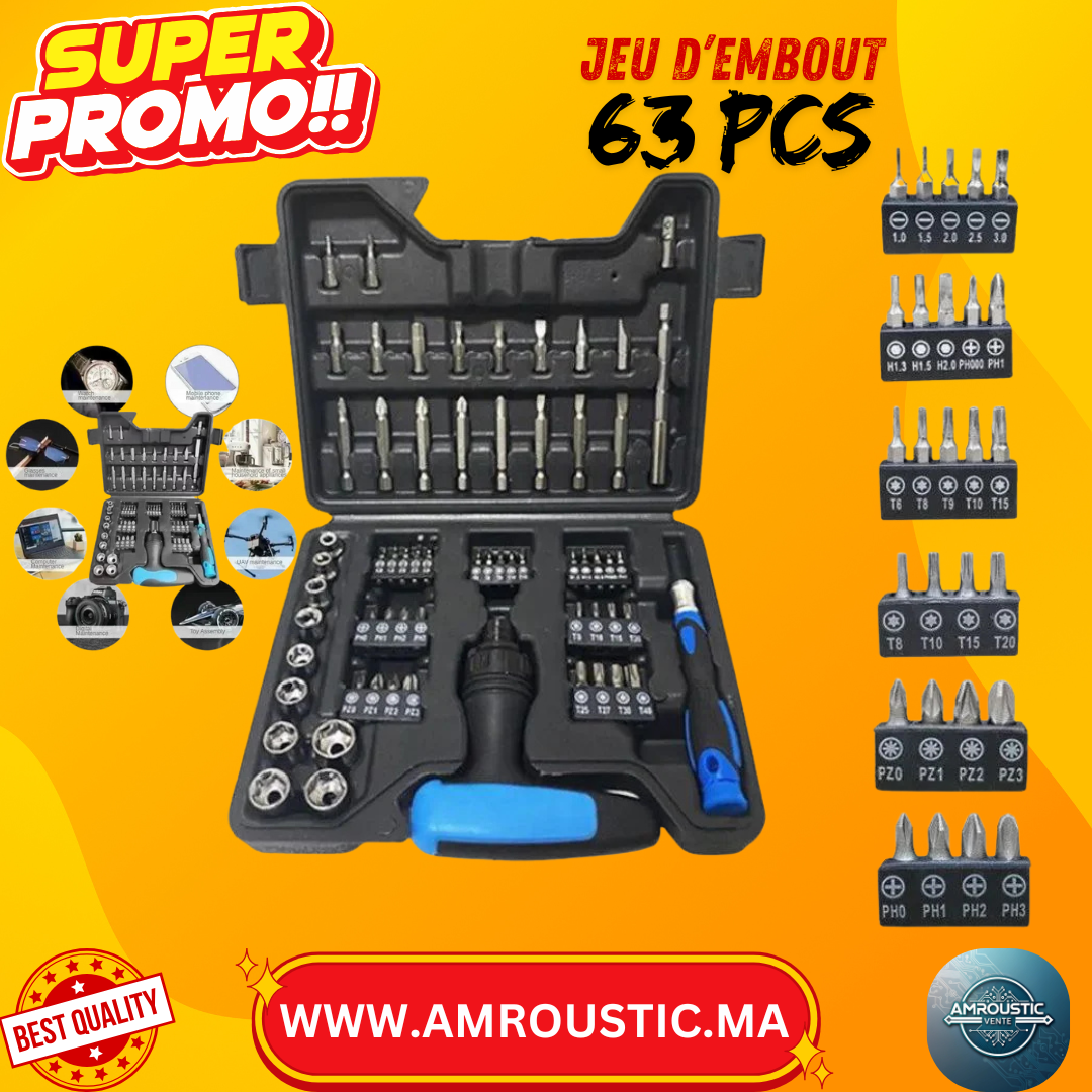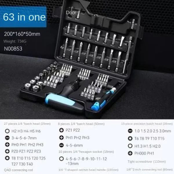 مجموعة رؤوس مفكات البراغي المكونة من 63 قطعة
