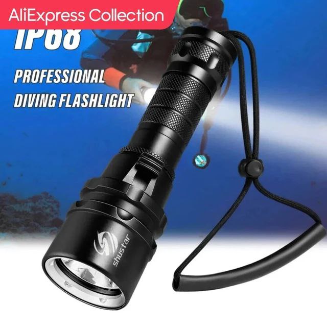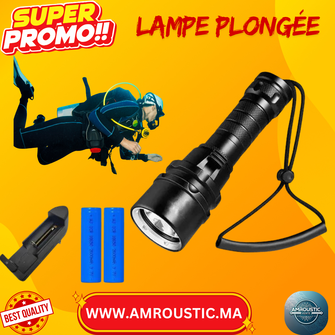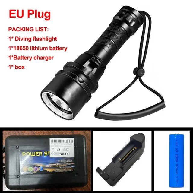 مصباح غوص مقاوم للماء IP68 + شاحن + بطاريتان 18650
