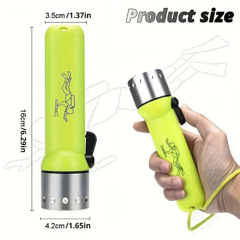مصباح غوص ABS، معدات غوص وغطس LED مع مفتاح تشغيل/إيقاف بالإبهام، مصباح يدوي بحلقة مطاطية مزدوجة مقاوم للماء IPX8، إضاءة متعددة الأغراض للعمل تحت الماء والأرض (بطاريات AA غير متضمنة)