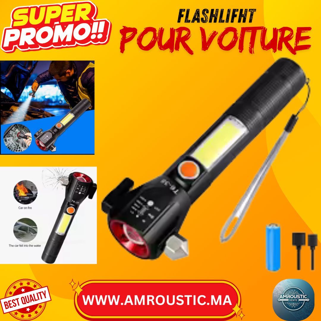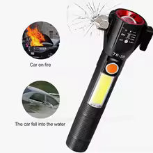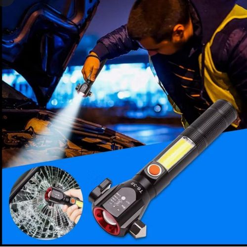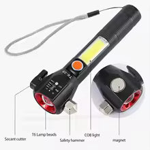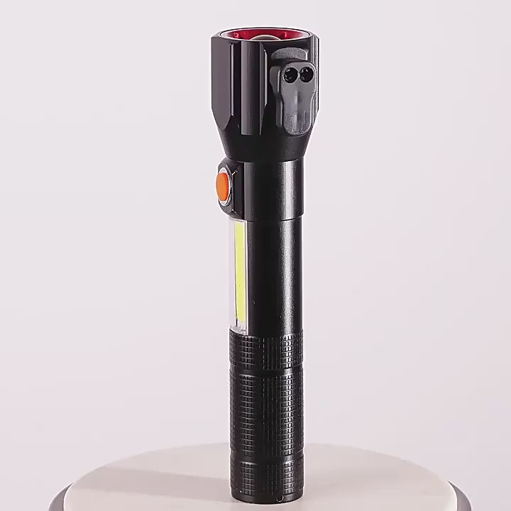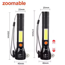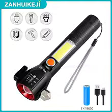 مصباح يدوي متعدد الوظائف 4 في 1، للدفاع عن النفس، قوي، LED + COB، مقاوم للماء، قابل للتكبير والتصغير، USB، مع بطارية