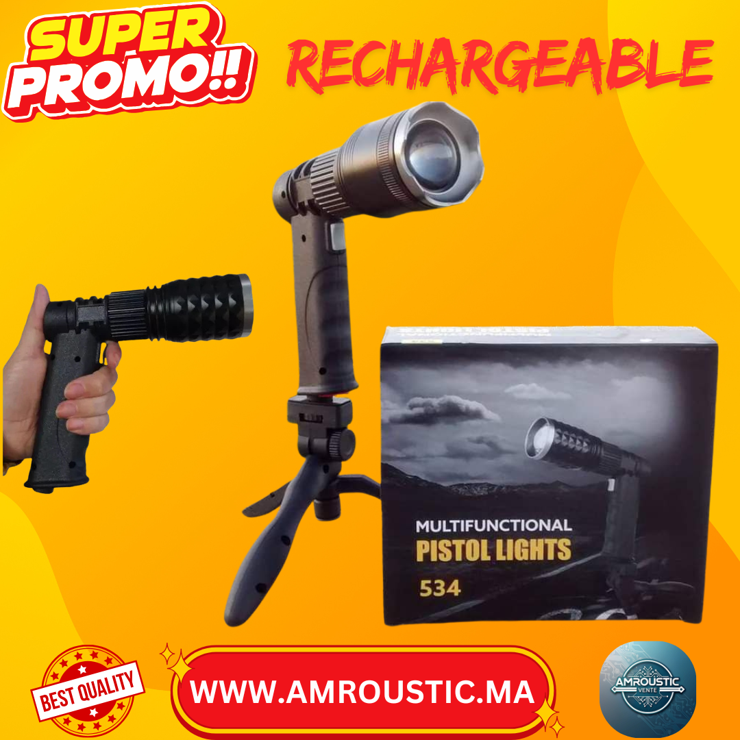 مصباح يدوي تكتيكي قابل لإعادة الشحن 534 مع حامل ثلاثي القوائم
