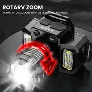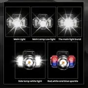 مصباح أمامي LED مع شحن USB، مقاوم للماء IP44، تكبير قابل للتعديل، استشعار ذكي للصيد الليلي والأنشطة الخارجية - ضوء أحمر وأبيض، مادة ABS متينة، إضاءة خارجية | ضوء قابل للتعديل | قابل لإعادة الشحن عبر USB