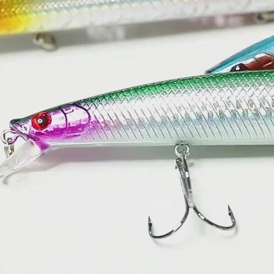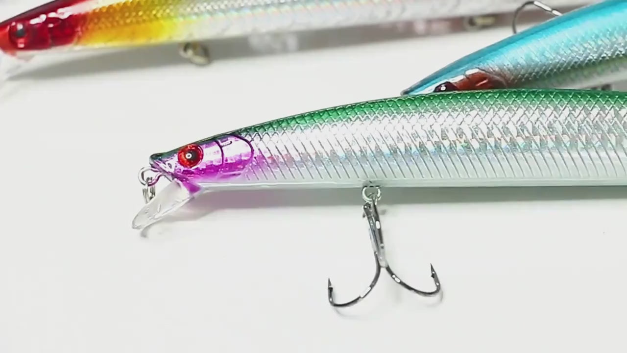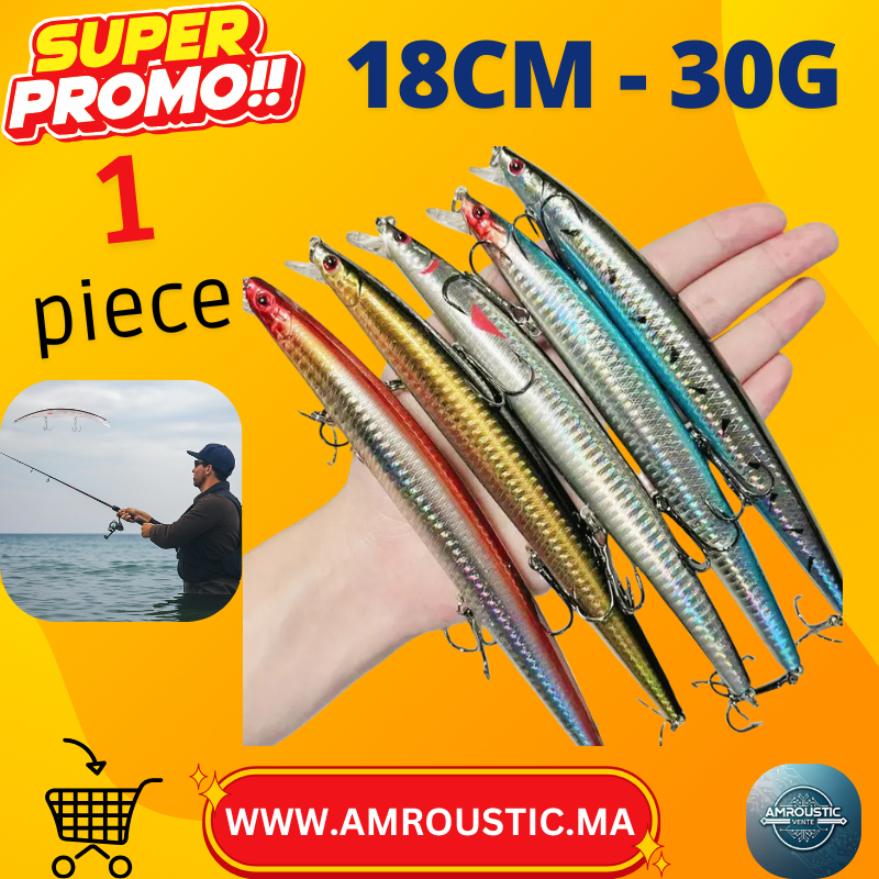 اجذب أكبر المفترسات! يُحاكي هذا الطعم المصنوع من سمكة صغيرة حركة السباحة لسمكة صغيرة بفضل شكله الانسيابي وطلاءه اللامع. يعكس جسمه المصنوع من البولي كربونات الصلب الضوء من جميع الزوايا، حتى في المياه العكرة.