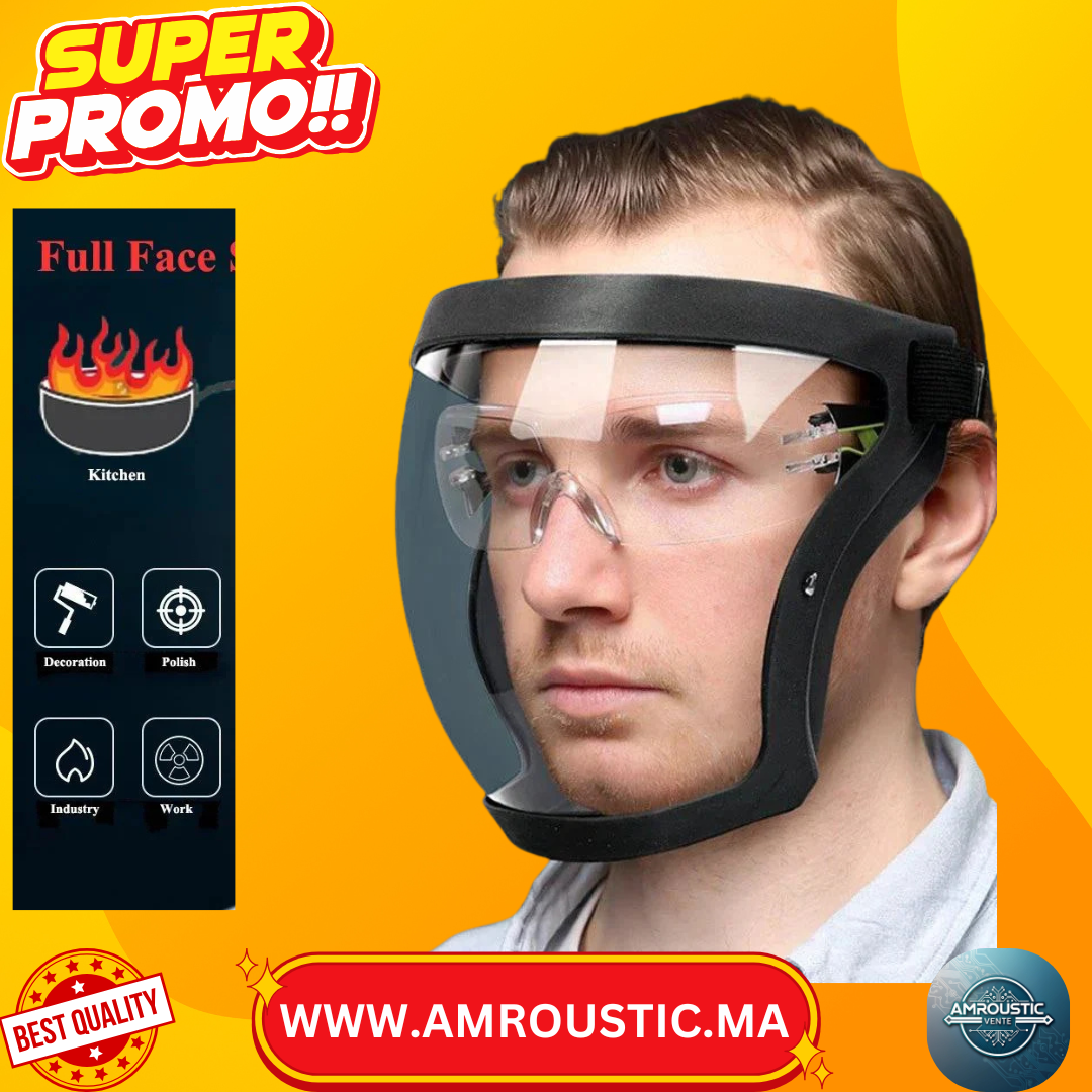 قناع أمان شفاف مع خيوط، واقي كامل للوجه، نظارات واقية للعمل، مضاد للضباب، غطاء للرأس، مضاد لتناثر الزيت