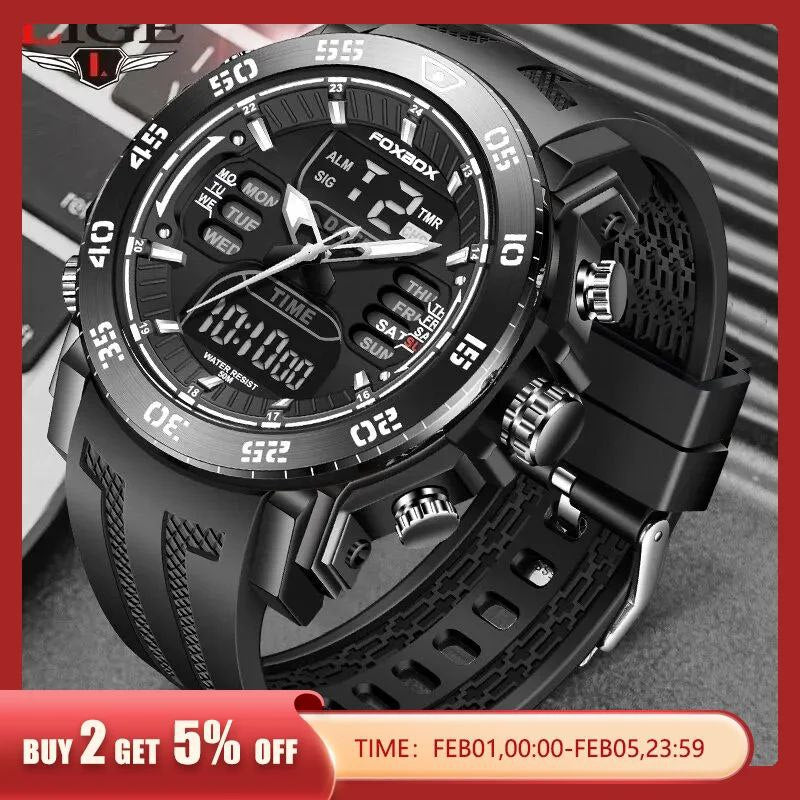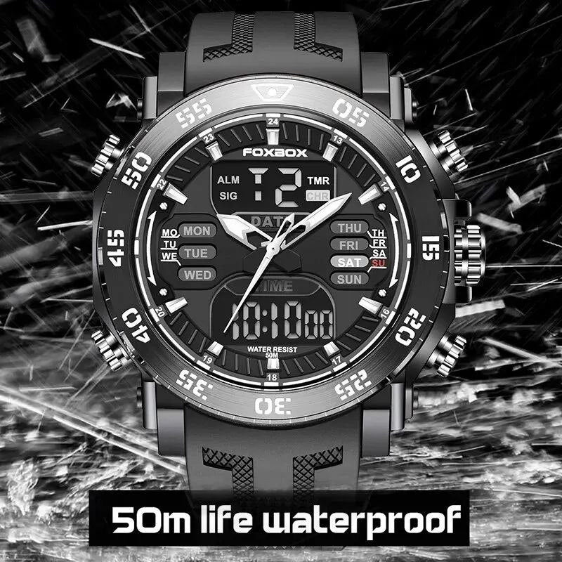 ساعة فوكس بوكس العسكرية الرقمية للرجال، مقاومة للماء حتى عمق 50 مترًا، ساعة كوارتز LED، ساعة رياضية للرجال، ساعة رجالية كبيرة