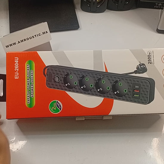 يُعدّ شريط الطاقة EU-2604U حلاً عملياً وموثوقاً لتشغيل أجهزة متعددة في وقت واحد. فهو يجمع بين أربعة منافذ تيار متردد آمنة وثلاثة منافذ USB (اثنان قياسيان وواحد من النوع C) ، مما يجعله مثالياً للاستخدام المنزلي أو المكتبي أو للأجهزة الإلكترونية الحساسة.