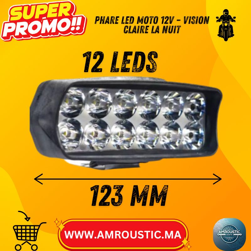 مصباح أمامي للدراجات النارية/السكوتر بتقنية LED بجهد 12 فولت - مصباح إضافي مقاوم للماء (12 أو 16 مصباح LED)