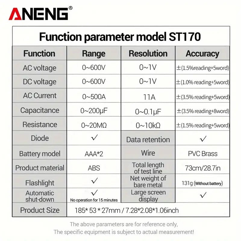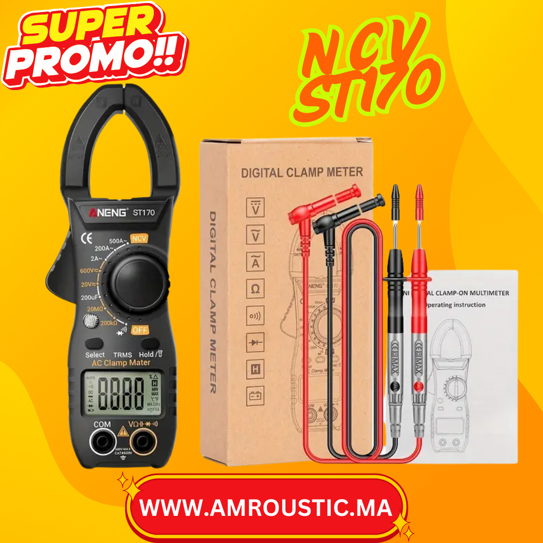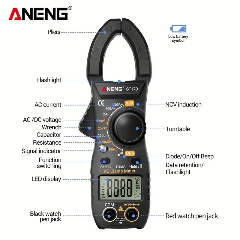مقياس التيار الكهربائي الرقمي ANENG ST170، مقياس متعدد 500 أمبير تيار متردد، 1999 عدادًا، جهاز اختبار جهد التيار المتردد/المستمر، السعة، هرتز، الجهد غير المتزامن، اختبار الصمام الثنائي أوم