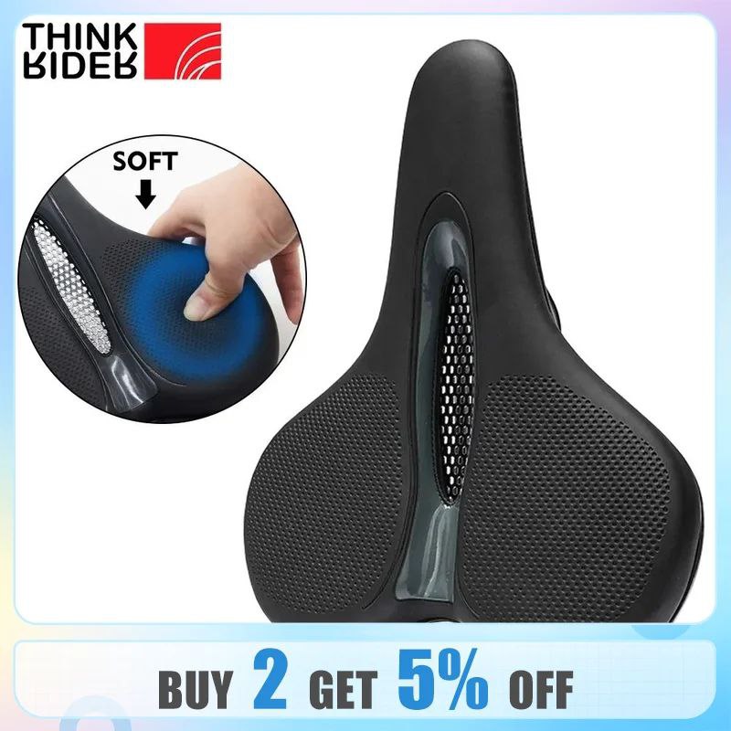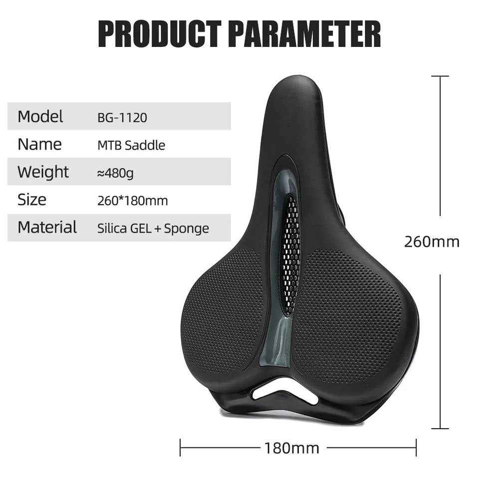 سرج دراجة جبلية قابل للتهوية ووسادة كبيرة للمؤخرة ومقعد من الجلد ووسادة مجوفة لامتصاص الصدمات
