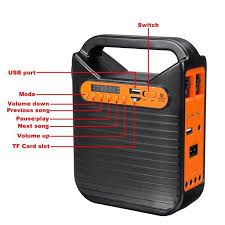 العلامة التجارية: إيزي باور، الموديل: EP-391BT، بلد الصنع: جنوب أفريقيا/الصين، التسمية: نظام إضاءة شمسي صغير. المواصفات: مادة المنتج: بلاستيك (PVC). سعة البطارية: 9 فولت/3 واط. عمر البطارية: من 3 إلى 5 سنوات. يأتي مع 3 مصابيح LED ومصباحين. مدة عمل مصباح الطوارئ: من 10 إلى 12 ساعة. مدة عمل المصباح الواحد عالية. يأتي مع شاحن احتياطي. منفذ كابل USB لشحن الهاتف. سلك مصباح بطول 3 أمتار. يدعم تقنية البلوتوث. يحتوي على فانوس كبير على الجانب. اللون: أسود.