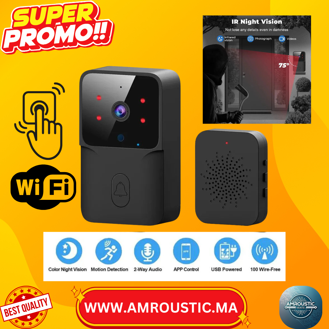 جرس باب منزلي لاسلكي Tuya مزود بكاميرا تعمل بالبطارية DC AC مع جرس باب من Google Alexa