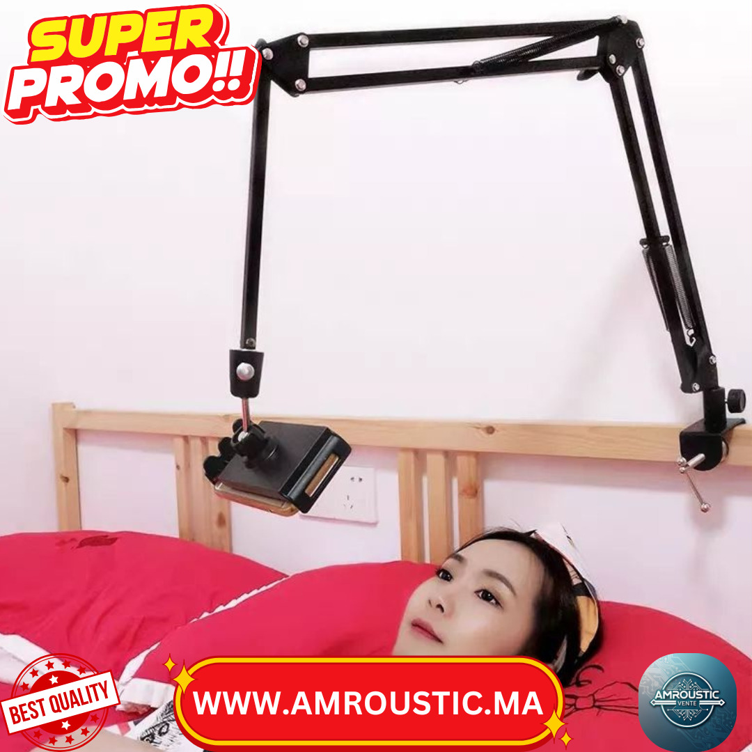 حامل هاتف محمول معدني لسطح المكتب مقاس 6-11 بوصة، حامل هاتف خلوي وجهاز لوحي، ذراع طويل، حامل تثبيت على السرير، مشبك دعم لهاتف Xiaomi Mi Pro Air Mini