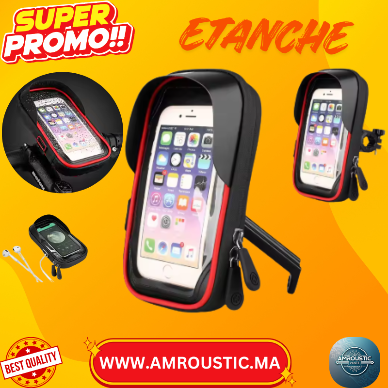 حافظ على هاتفك محميًا وفي متناول يدك أثناء رحلاتك باستخدام هذا الحامل المقاوم للماء للدراجات الهوائية أو النارية .