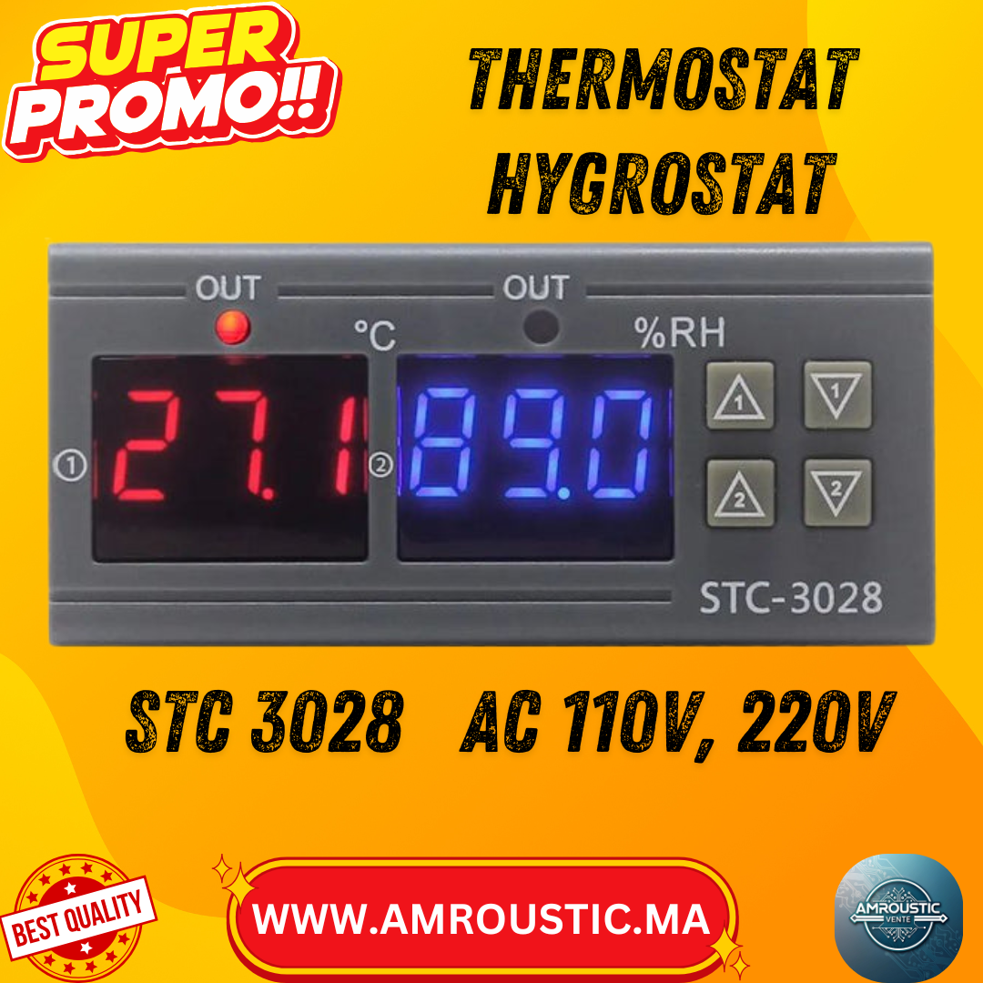 ترموستات رقمي للتحكم في درجة الحرارة والرطوبة، STC 3028، تيار متردد 110 فولت، 220 فولت، مقياس رطوبة، وحدة تحكم في الحاضنة