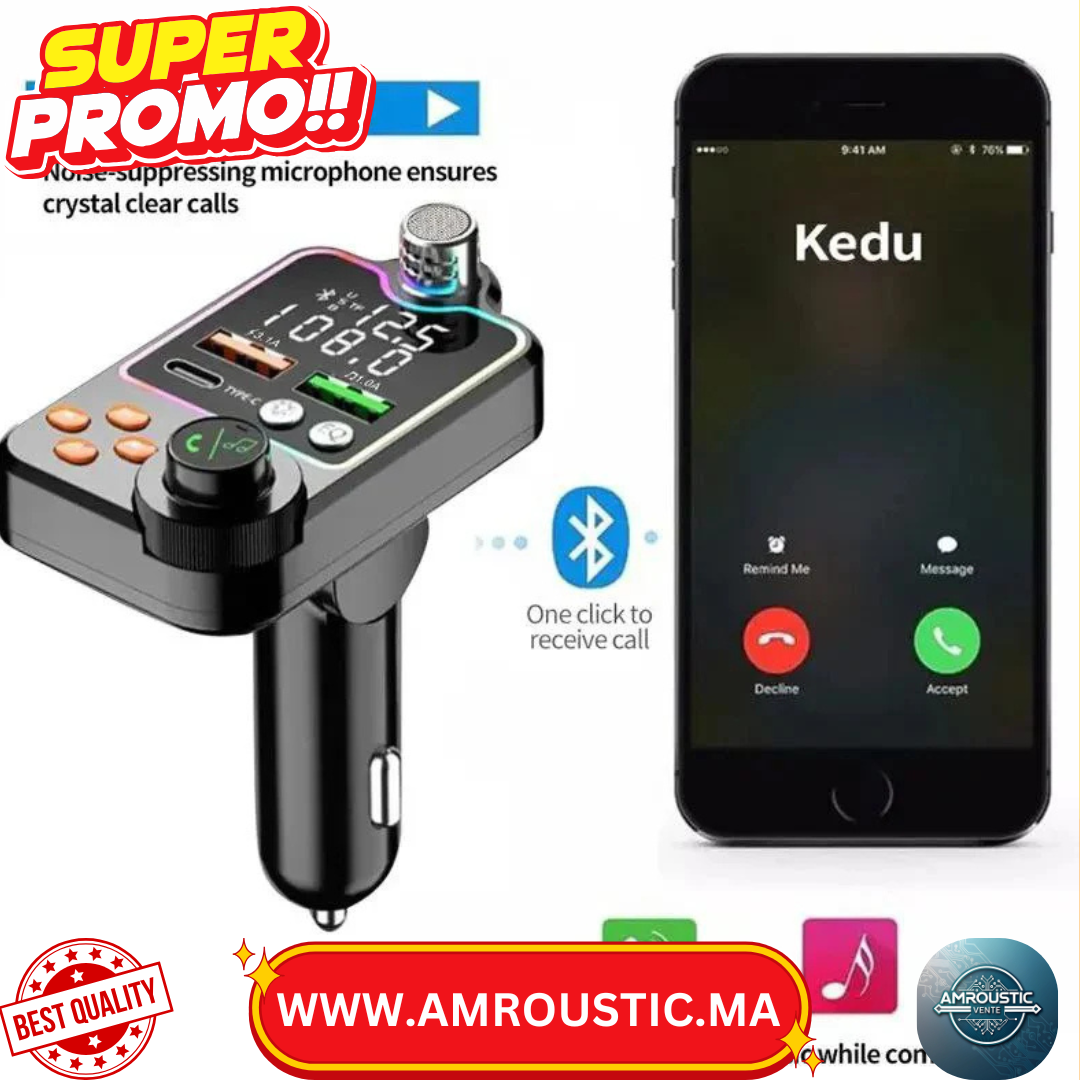 جهاز إرسال FM للسيارة Q15 مزود بتقنية البلوتوث 5.0 ومنفذ USB للسياح وشحن PD ومجموعة صوت لاسلكية بدون استخدام اليدين