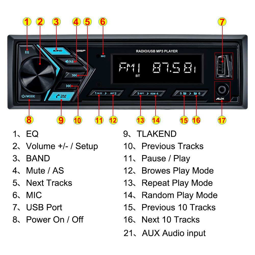 مشغل MP3 مع لوحة قابلة للفصل، 7 مصابيح للمستندات، موالف راديو FM USB مع شاشات عرض LED، مدخل AUX، USB