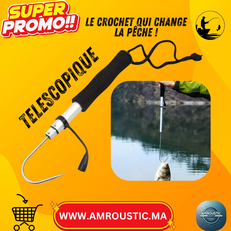 Crochet de pêche 30 CM télescopique en acier inoxydable avec manche antidérapant et dragonne de sécurité. Idéal pour sortir facilement vos prises de l’eau, cet outil robuste offre une excellente résistance à la corrosion et une bonne prise en main. Parfait pour la pêche en mer ou en eau douce.