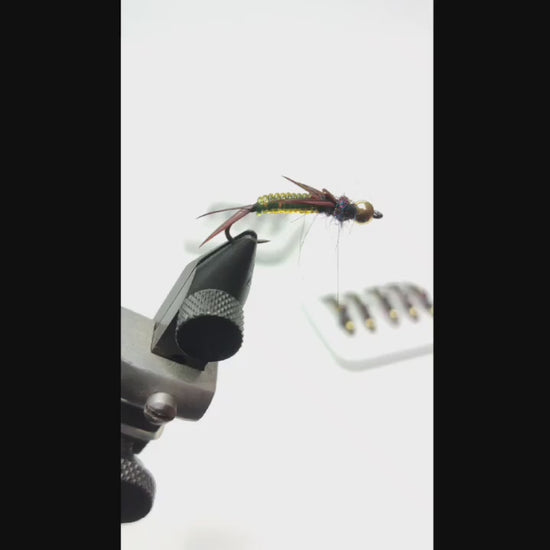Fabriquées avec une grande précision, ces mouches de pêche sont équipées d’une bille dorée lestée permettant une descente lente et naturelle dans l’eau, idéale pour les zones à courant modéré.