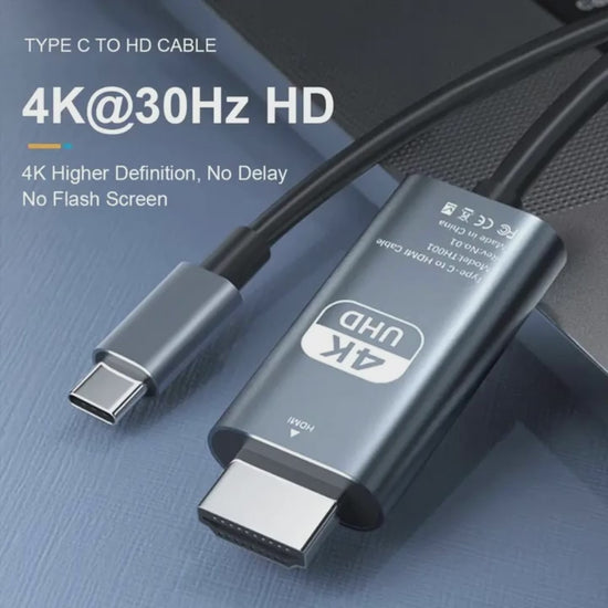 🔌 Câble de Conversion Vidéo HD 4K 60Hz – Type-C vers HDMI (2m, tressé)